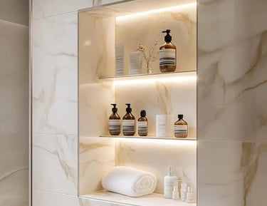 Nichos e revestimentos que valorizam qualquer ambiente.
